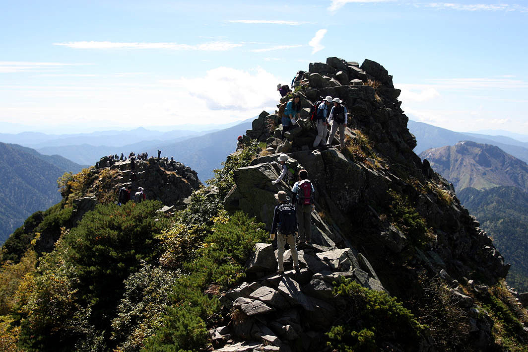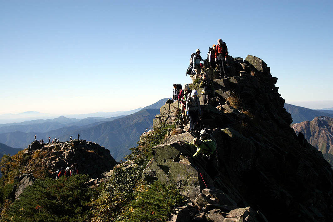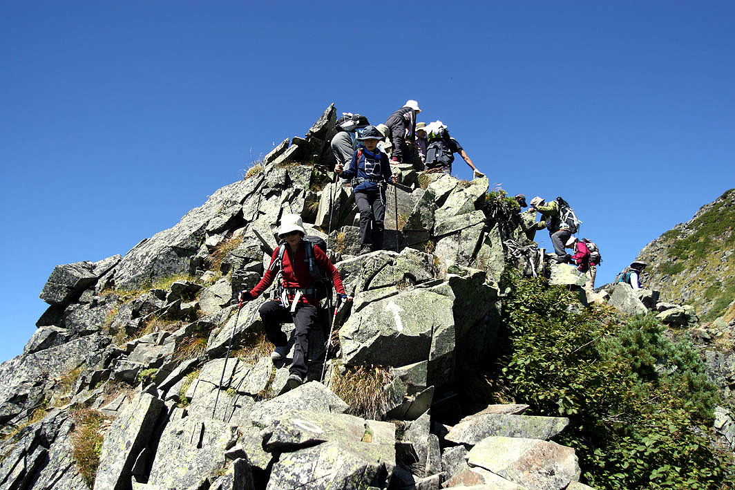 ●昨年の計画書では以下のように書きました────もちろんダブルストック必携ですが、岩場で使えるレベルの人を対象とします。西穂独標から西穂高岳までは「だれでも」というわけにはいきません。ダブルストック最上級クラスとお考え下さい。────と書いて、物議を醸しているようです。もちろん「ダブル」で全ルートを突破するという意味ではありません。糸の会ですから岩場でストックが使えないレベルの人はご遠慮いただきたいという意味です。最終的に各自が自分の命を守るのは「三点支持」です。