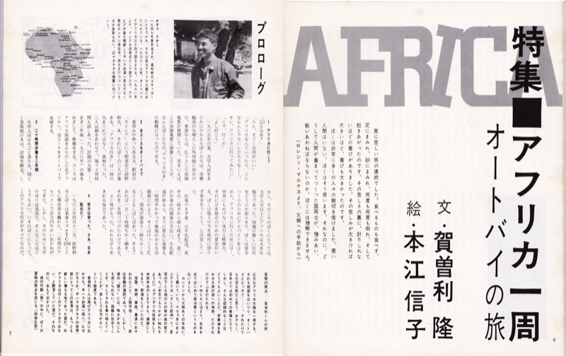 *その賀曽利さんが、今度は1人で2度めのアフリカに行ってしまったのですが、彼の原稿にルートガイドをつけ、観文研の本江信子さんのイラストを加え、編集は向後元彦さんのもとで、伊藤の初仕事。