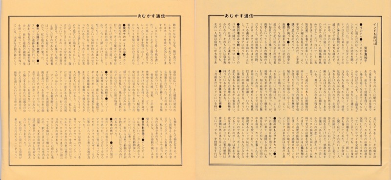 *1974年ごろから「あむかす・旅のメモシリーズ」という手書きのガイド(報告書の下原稿を買い取るというイメージ)をはじめました。個人の旅でも報告書をつくるという文化を提唱したかったのです。デュプロ印刷でわら半紙二つ折り、ホッチキス止めという手作り本でした。