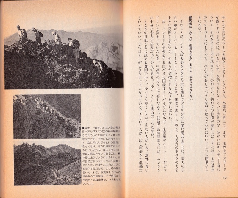 *これらはすべて登山講座のなかで撮ったものです。ごく最近では私は最後尾について、写真を撮った遅れを急ぎ足で挽回するのを繰り返していますが、1995年からの約20年間は先頭でルートハンティングとペースメイクをやりながら、グループの先頭で見つけた「その日ならではの光景」を「初めて参加した人の目線」で、できるだけ漏れなく撮るようにしていました。その、ごくありふれた光景ともいえるけれど私たちには共有できた瞬間の写真で1冊の本を埋め尽くしたいと思ったのです。