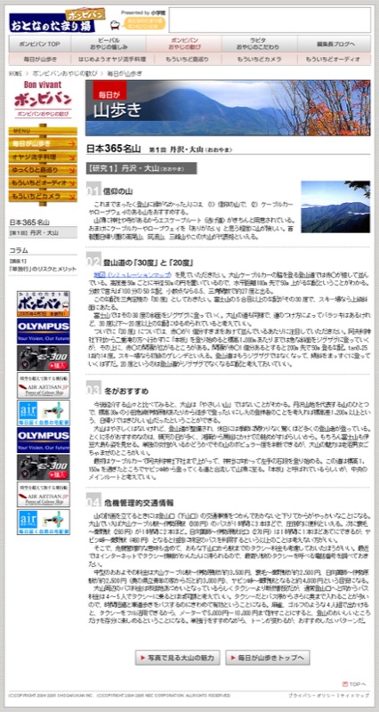 ★2005〜2010──Web版「日本365名山・毎日が山歩き」(NECビッグローブ・ステーション50の小学館担当「おとなのたまり場ボンビバン」)