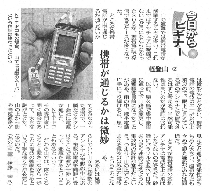 *日本経済新聞社の礒哲司さんという方から直接電話をもらったのだのだと思います。さっそく出かけて行ったのですが、ご本人は登山というものにほとんど関心が無いようで、枠が大きければ自由勝手にできるところでしたが、夕刊の小さな定番コラムらしいので「登山」というジャンルで選んでいただけたのはうれしかったのですが、窮屈な気分で書きました。コラムになっているかどうか……「たくさん書けばわかってもらえる」という程度の筆力では成功したかどうかわかりません。