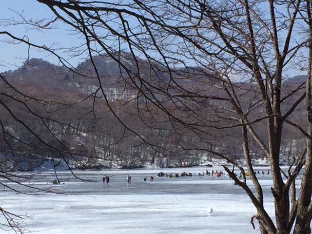 写真では見えないが、ワカサギ釣りの人達がいたけど釣れるかな?
