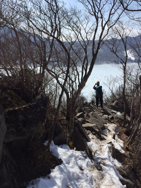 急登が続いて。足下は冬なのに日差しは春本番で汗ばむほど。