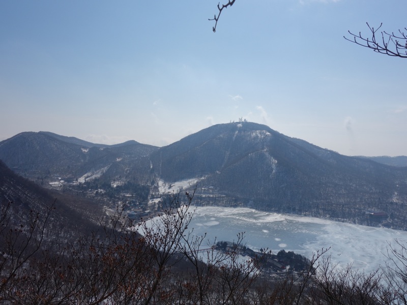 ここでは大沼の南半分が見えています。赤城神社の先に見える氷の「不穏な表情」がやはり気になります。