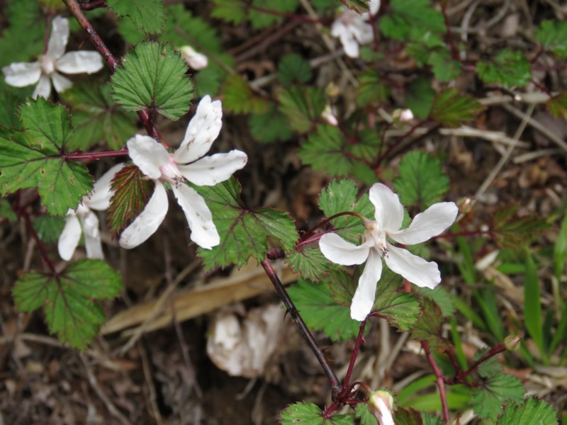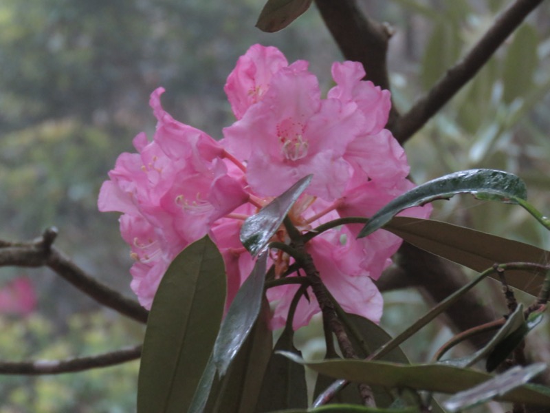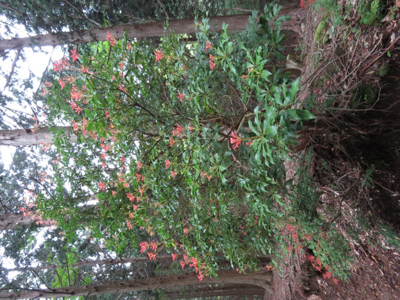 北斜面のこの道筋でも、ときおりシャクナゲが出てきますが、ヒョロヒョロとした枝先にポツポツと花をつけて、いかにも風通しのいいシースルー感は、天城山の稜線で見たものとは雰囲気がちがいます。でもこれがアズマシャクナゲ一般の雰囲気に近いのではないかと思いました。