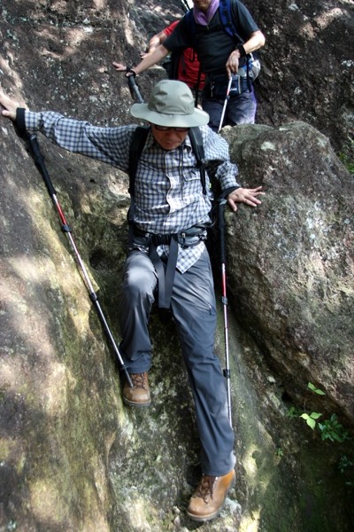 岩はやはりすこし滑りやすい状態です。進むか戻るかですが、雨が上がって、いい方向に向かうと希望的な判断をしました。