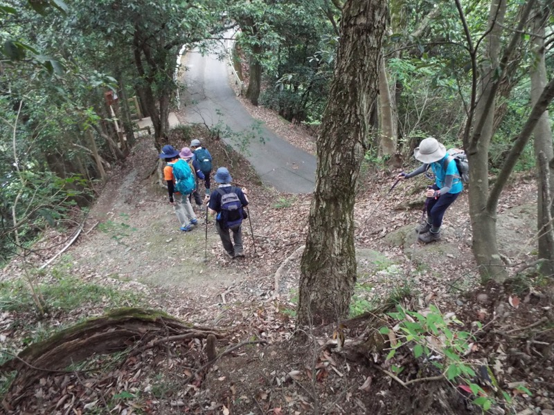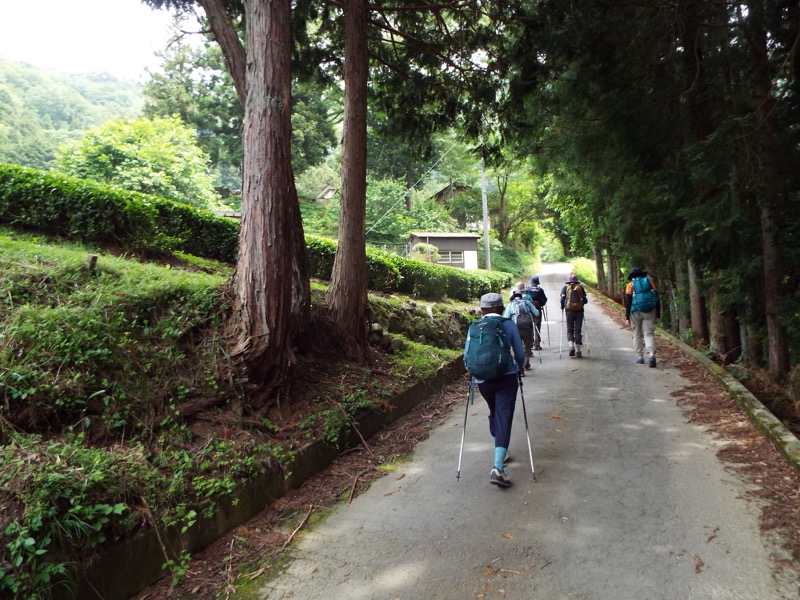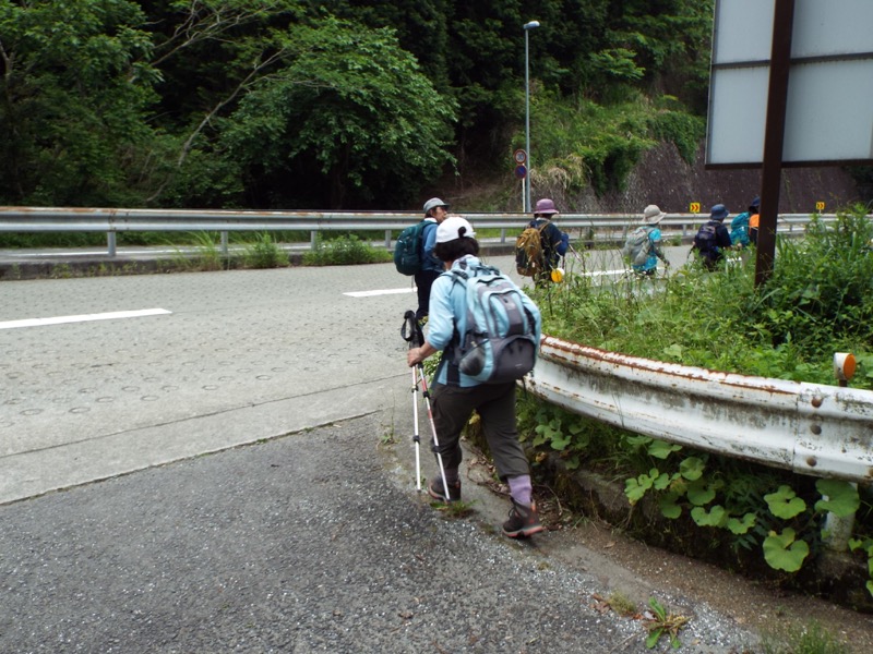 じつは鍛冶屋敷の大野山登山口バス停がシーズン中以外は利用されない停留所だと知り、さらに15分ほど下った大野山入口バス停まで歩くか、タクシーを呼ぶかということになったのです。みなさんはもう歩きたくないという雰囲気だったのでタクシーを呼んでみたのですがそれがうまく通じない。そこでとりあえず15分下ることにして、私はどんどん歩き出したのです。