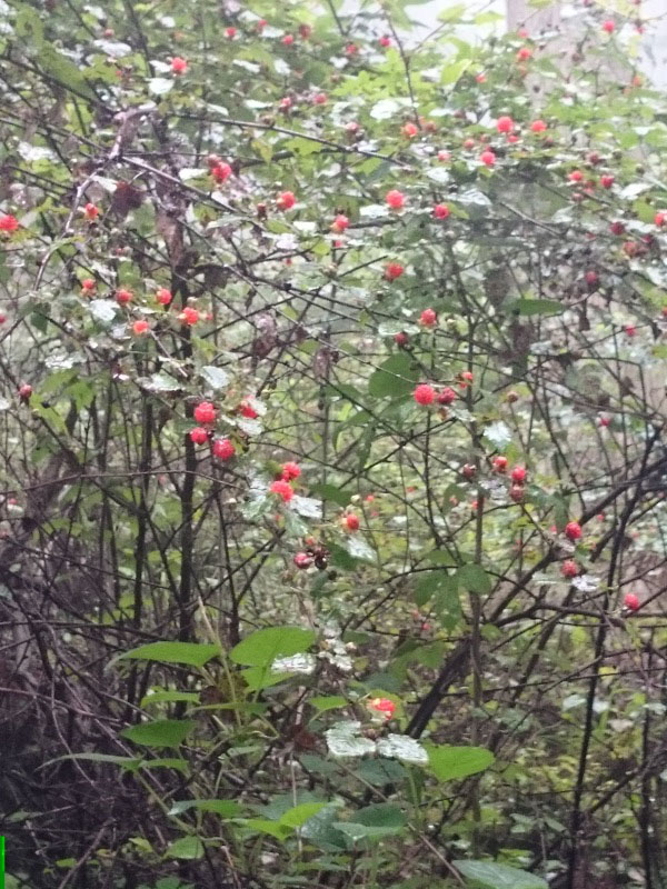 細倉橋のところで舗装された林道に出ました。そこにこれがあったのです。わたしは「ハンゲショウ」などと叫んでいたのですが、まったくのデタラメ。ごくあたりまえのマタタビでした。