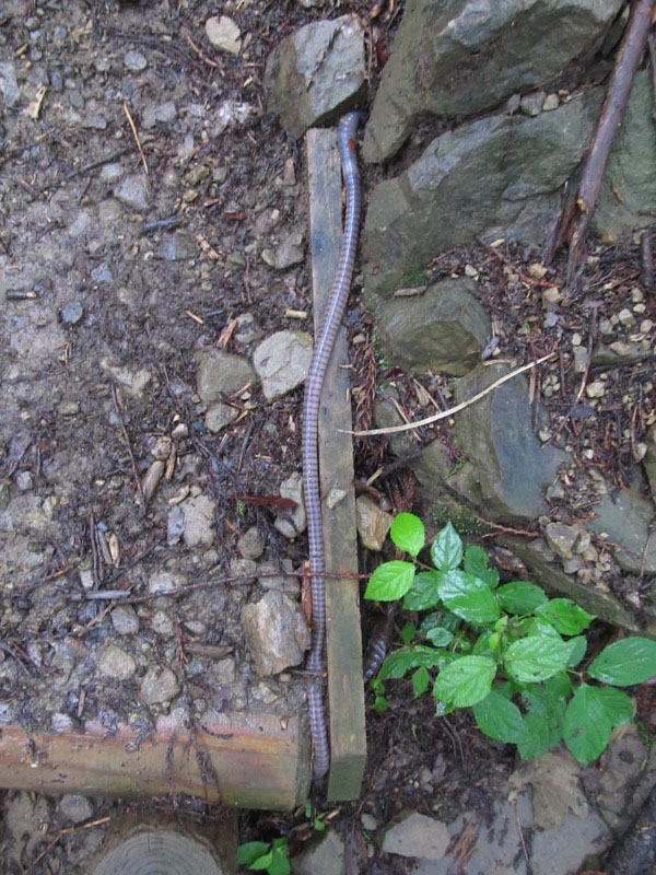 クガビルだと思います。ヤマビルのように人間の血を吸うことはないようですが、これが自分より大きなミミズを丸ごと飲み込んでいく光景は圧巻のようで、ネット上にたくさんの動画が配信されています。登山道ではときどき見かけるお馴染みさんです。