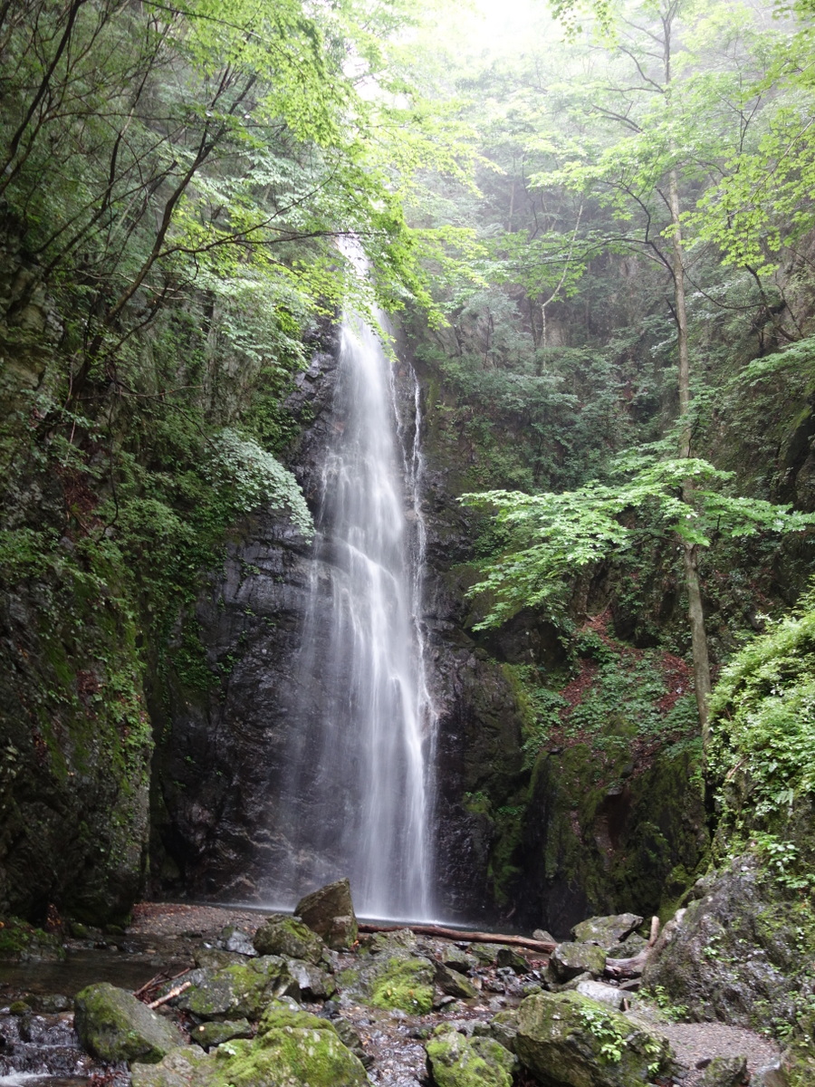 百尋の滝。なかなか立派な滝でした。雨模様のお天気のせいか深山幽谷の雰囲気十分。