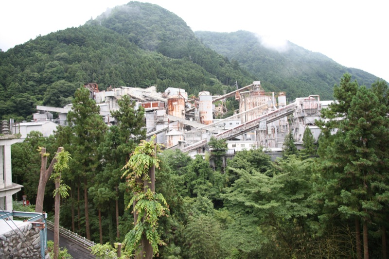 今回、私は大失敗してしまいました。川乗橋(バス停は「乗」です)から奥多摩駅行きのバスの時刻が現実と大幅に違っていて、1時間バスを待つか、1時間歩いて駅まで行こうかという選択肢となり、後者を選んだのです。おかげでお化け屋敷みたいな奥多摩工業氷川工場をじっくりと眺めることができました。日原の石灰岩を掘り出して、ここではセメントではなく消石灰とか生石灰はじめ、石灰石関連商品をつくっているようですが、現役の工場にもかかわらずお化け屋敷的な魅力? によって一部のマニアには有名、映画のロケにも使われるという存在なのです。ただ、この1時間の舗装路歩きが多くの皆さんの大不評を買いました。昼間1台常駐することになった奥多摩駅のタクシーもすでに帰途についているとかで利用できませんでした。