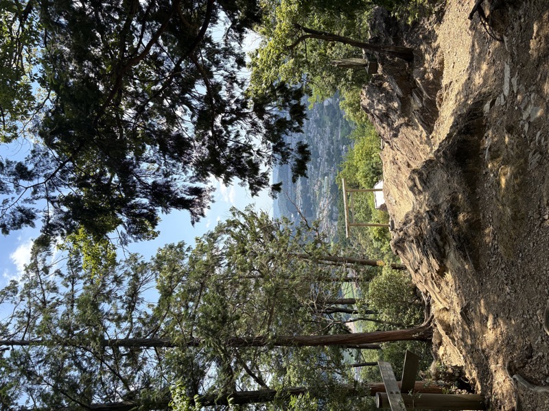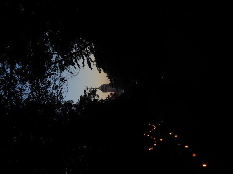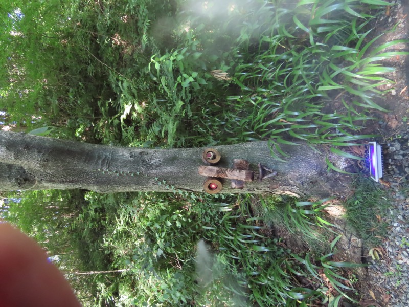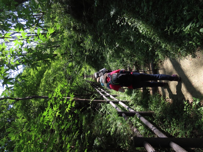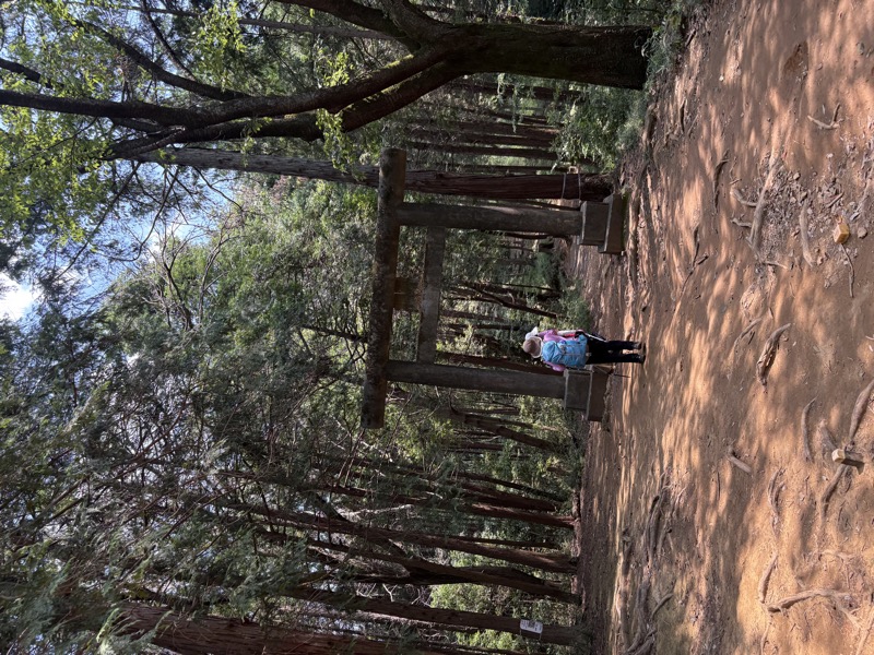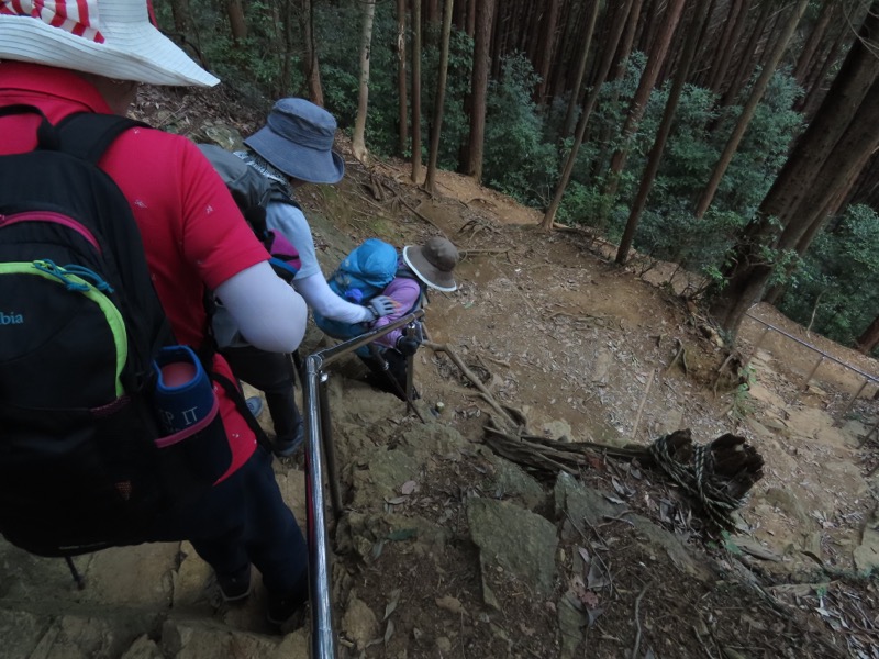 ────1245-1300ごろ_日和田山(ひわださん)山頂で休憩(標高約305m) 1310ごろ_金刀比羅(ことひら)神社から女坂を下る(標高約250m) 1320ごろ_男坂との分岐(標高約170m) 1335-40ごろ_登山道終点でトイレ休憩(標高約120m) ────1350-1405ごろ_巾着田を横断