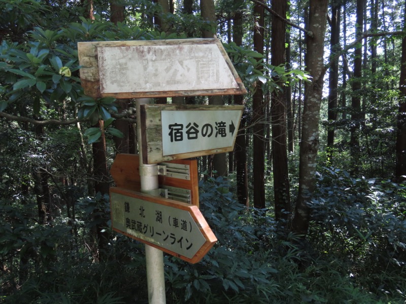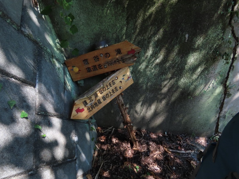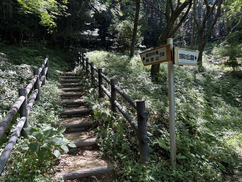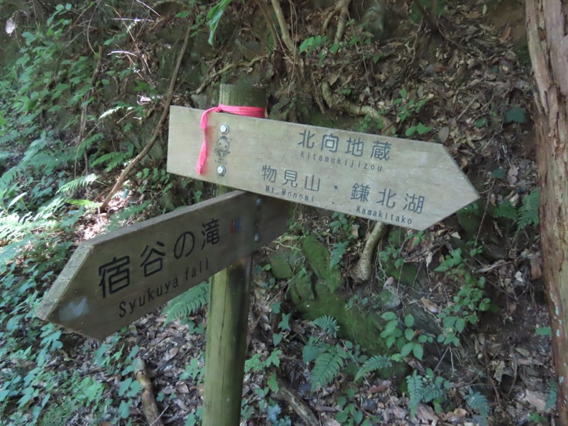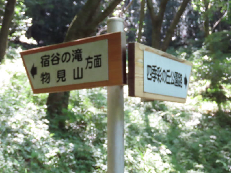 ────0945ごろ_鎌北湖を出発(標高約170m) 1010ごろ_自動車道路に出る 1015ごろ_宿谷の滝入口(標高約190m) 1025-40ごろ_宿谷(しゅくや)の滝で休憩(標高約160m) ────1135-55ごろ_物見山山頂で休憩(標高=375m)