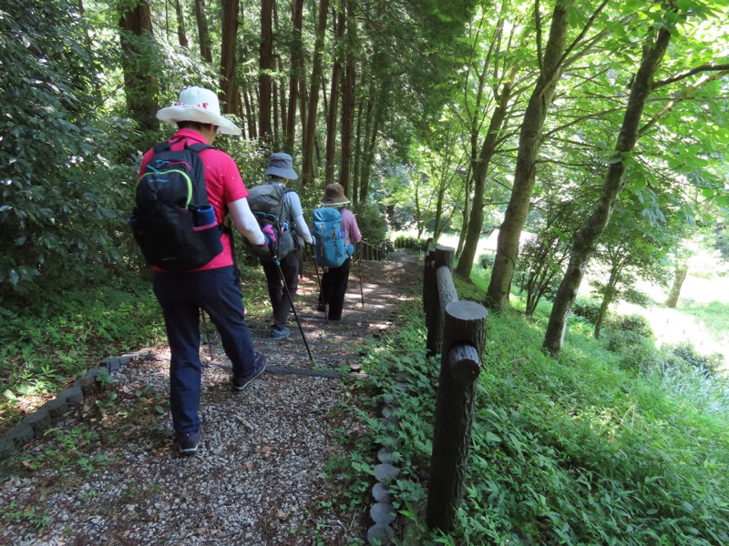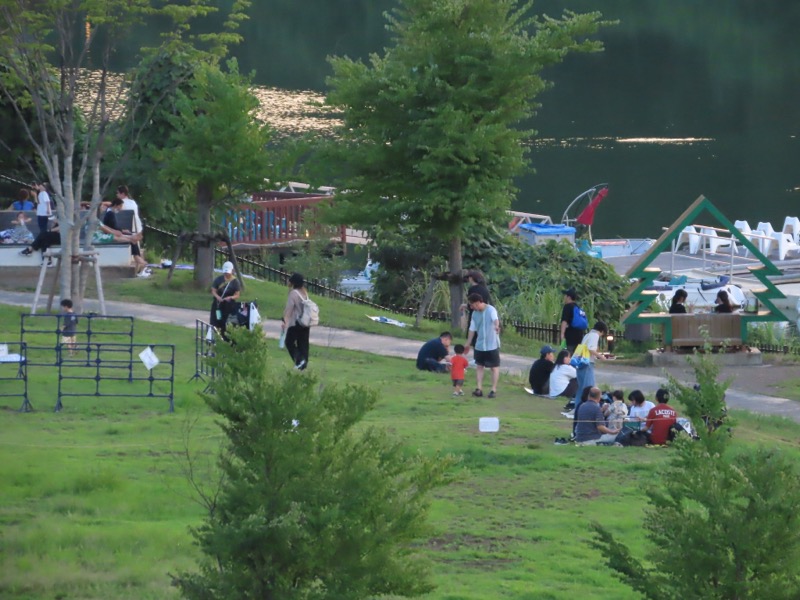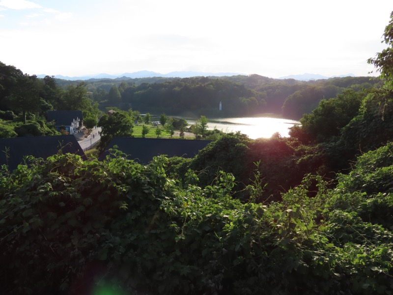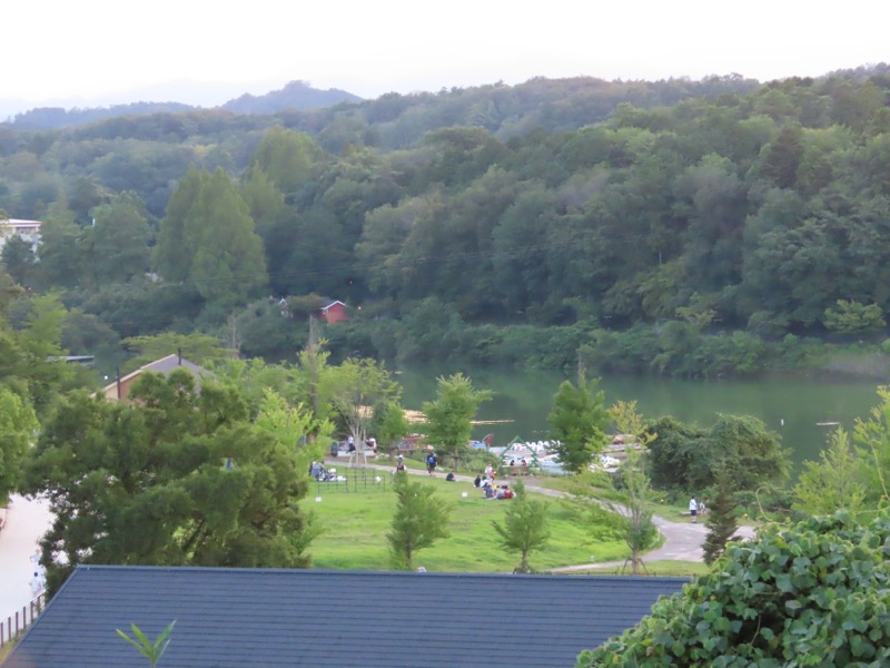 ────1440-45ごろ_高麗(こま)峠で休憩 ・新武蔵丘ゴルフコースのフェンスに沿って下り 1515ごろ_宮沢湖(標高約110m) 1530ごろ_宮沢湖温泉・喜楽里別邸(標高約140m) ・夕食後、テラスでゆったりと談話