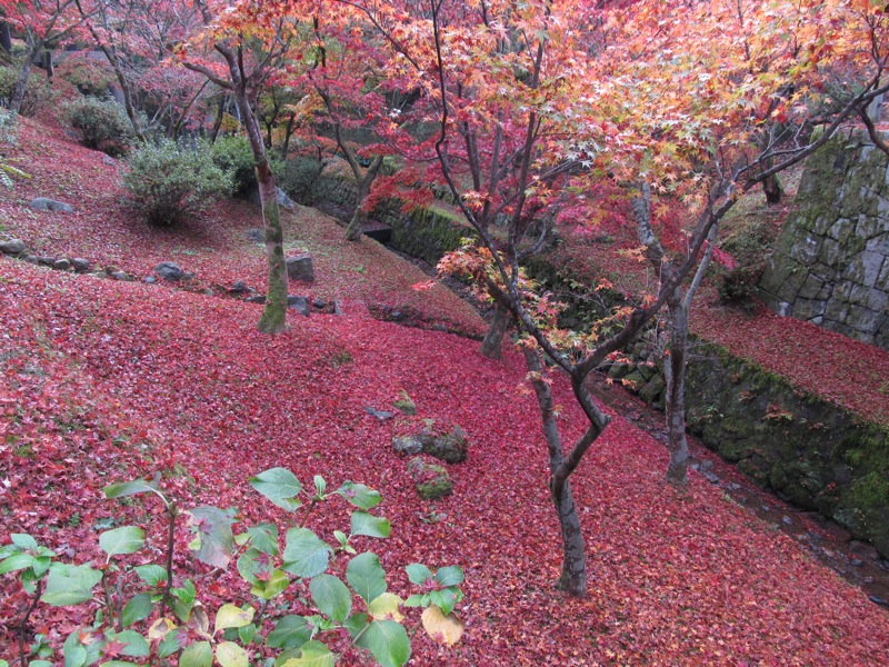 紅葉は 一部終わりかかっているのか 落ちている葉っぱも十分 味を添えていた。 只々 ため息。