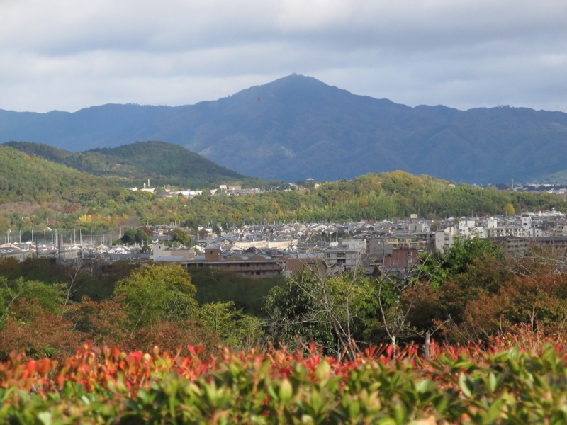 高台寺に隣接する高さ24mの霊山観音(りょうぜんかんのん)座像。竹林のところでその横顔が見えました。第二次世界大戦における全世界の戦没者を慰霊するため1955年に建立されたとか。ネットで見ると納骨施設のようです。