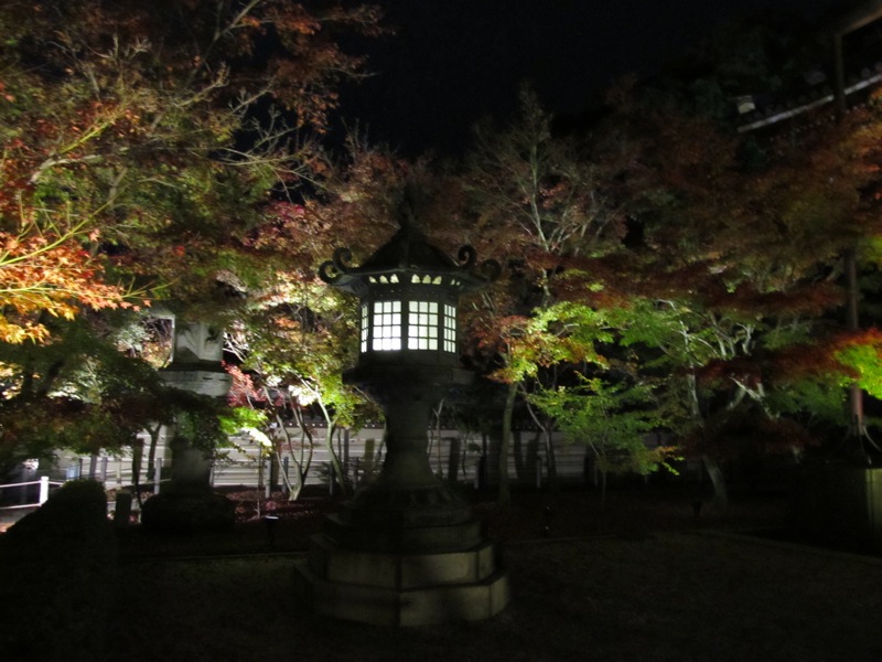 私は往復とも夜行バスなので、京都滞在は16時間可能でした。新幹線で帰るみなさんと別れて再び永観堂へ。結論を先に言ってしまうと永観堂の見応えは建物の中から切れ切れに見る庭の風景でしたから、庭だけのライトアップではいくぶん単調、寺社のライトアップが昔の松明照明から現在のイルミネーションとの間の、どのあたりにあるのだろうか、などと考えてしまいました。