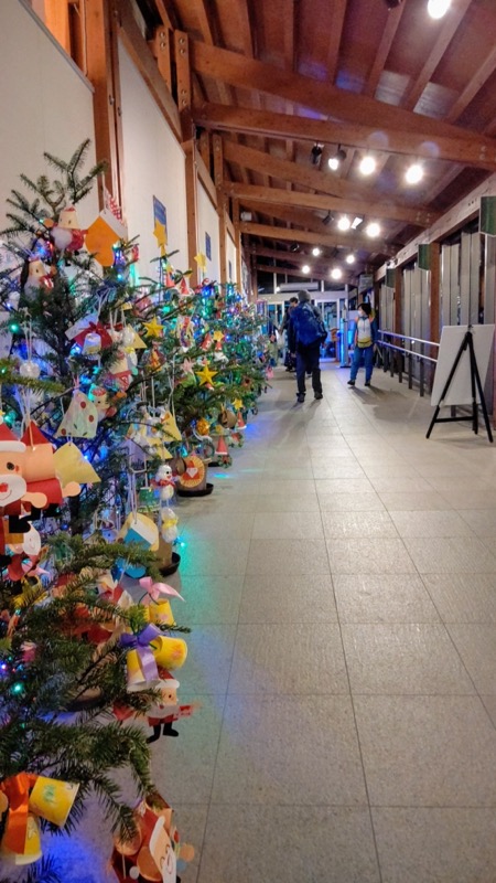 山頂を極めて、次はお風呂にドボンと楽しみに尾根歩きを気軽に考えていたら、なんのなんのその尾根歩きが延々と続き、かなり歯ごたえのある山行となりました。子供達が飾ったクリスマスツリーが瀬音の湯のフロアを飾ってました。帰りは立川駅でコーヒータイムを取って