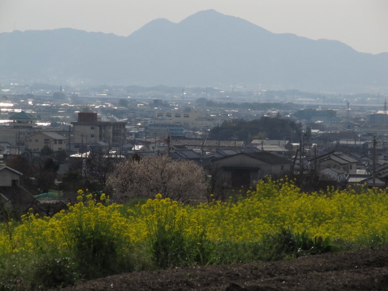 黄色くみえるのは菜の花です。その先に天理の町がボヤーとみえました。