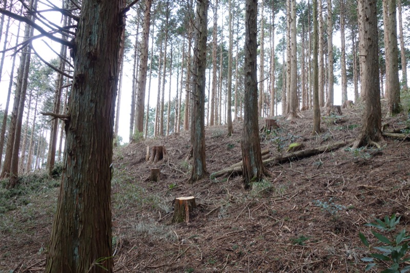 スギ・ヒノキの人工林に入りました。若き日の源頼朝の行動範囲がこのあたりにあったころ、ここは森林だったのか、竹藪だったのか?