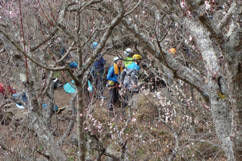 梅林の間から岩登りの人影が。一番手前はコーチ。うまく撮れましたか?