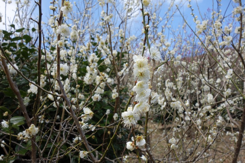 斜面一杯に 白やらピンクの梅が咲き誇っている。しばし ベンチに腰を掛け 時を忘れた。