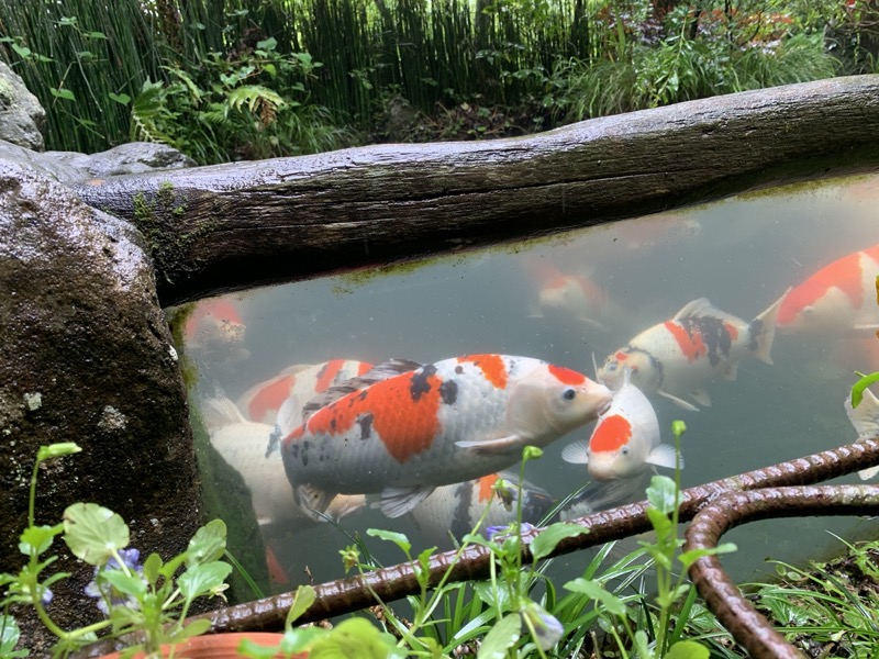 鯉が普通に泳いでいるのが見えるだけだけど、この角度から見るのは普通ではない。