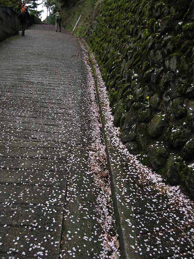 【15】ここはまだ奥多摩の町並みの中。旧青梅街道に入るとたちまち、桜吹雪が私たちを迎えてくれました。