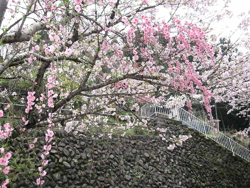 山中の一軒家の庭先の春爛漫。
