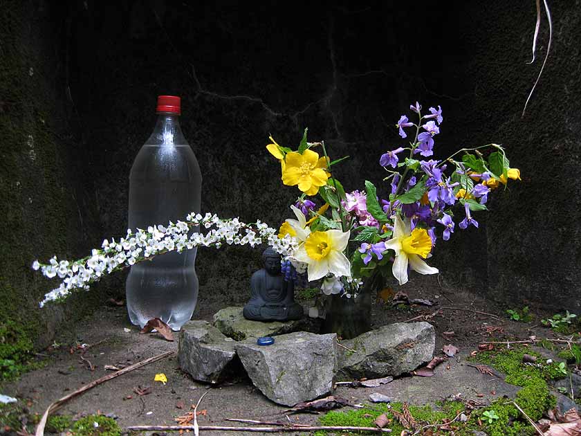 道筋には、古い街道時代を彷彿とさせるお地蔵さんや馬頭観音など信仰の香りが細々と漂っていました。これはなんだったか。誰がどんな願いを込めて花を捧げたのだろうか。