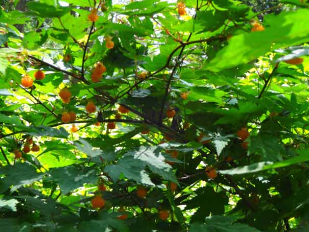 【13】モミジイチゴの実がたくさん生っていた。大きな実がやっぱり美味しい。木に生っているを採ってすぐ食べると美味しさが倍増する。