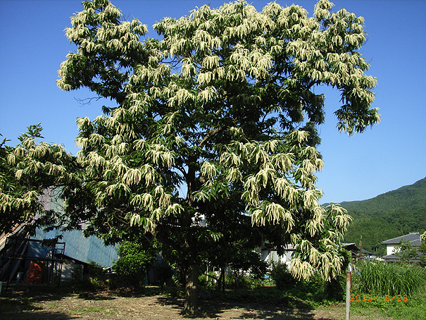 【16】栗花盛り──威風堂々たる栗の大木。咲き誇る花。秋には沢山の実をつけることでしょう。