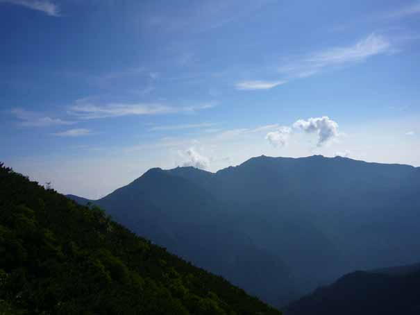 白根御池小屋から小太郎平に登ると、正面には鳳凰三山が全山見えていました。