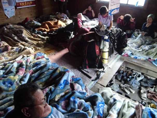 今回の計画の目玉のひとつがこの農鳥小屋泊まりでした。ネット情報を見ればわかるように、この小屋は「白根三山縦走」中の特異点です。しかも布団1枚に3人という可能性の高い得意日に。