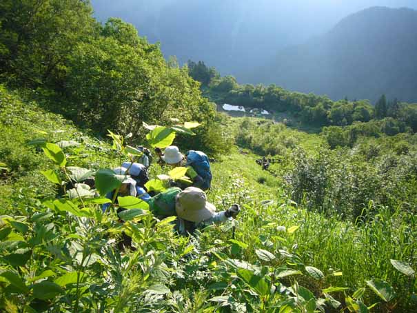 山頂手前の花畑で「花見休憩」をとりましたが、小林さんが肩の小屋から仕入れていた情報と重なってこの群落を見つけることができました。