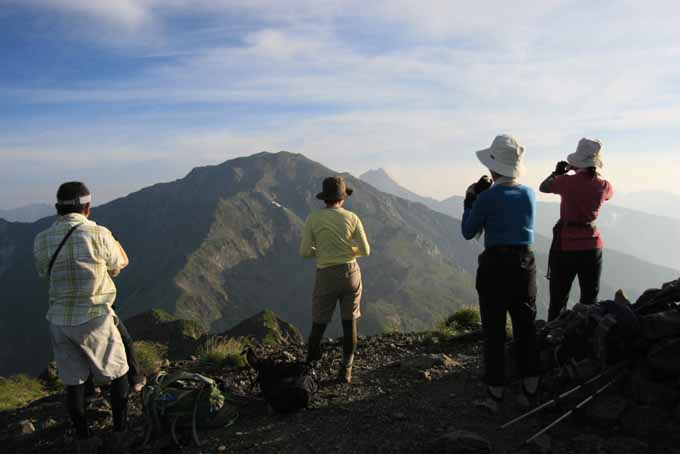 アルプスの稜線歩きの気分が良く出ています。後ろをのんびり歩いていないと撮れませんね。