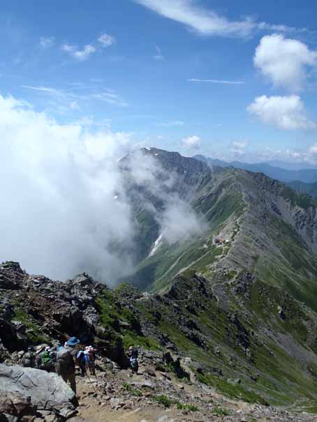 北岳から間ノ岳の縦走路に東側から恨みの雲が上がってきました
