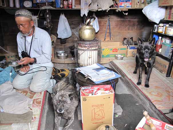 おじさんに断って犬の写真を撮らせてもらいました。2匹ともしっかりした賢そうないい顔をしています。