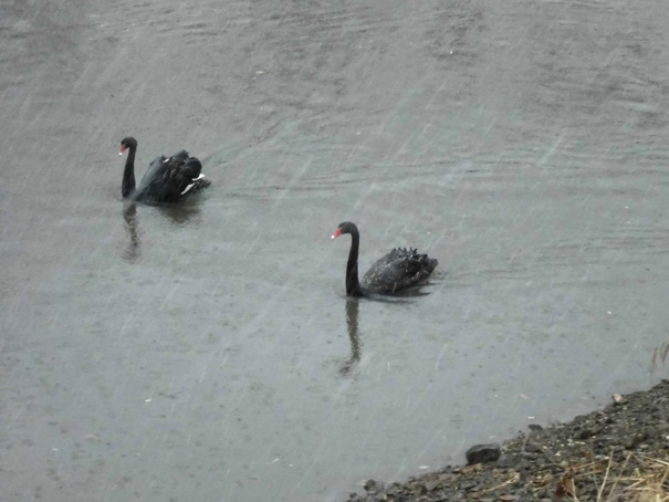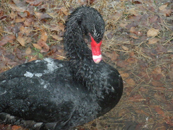 コクチョウ……背中に乗っているみぞれが 寒さを感じる。くちばしの赤がきれい。こんな間近で見たことない。撮影者予想・鈴木さん