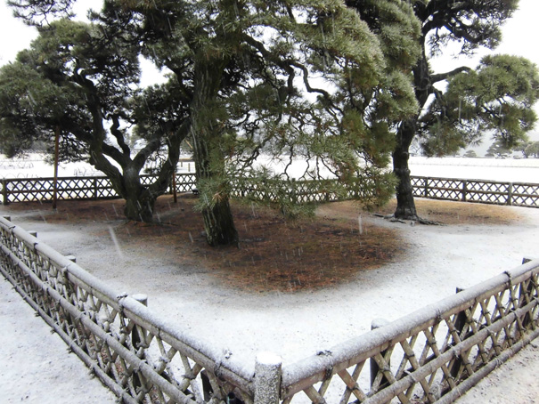 【07】白い雪景色の中 松の緑が 印象的だった。日本庭園に松は必須かもしれない。