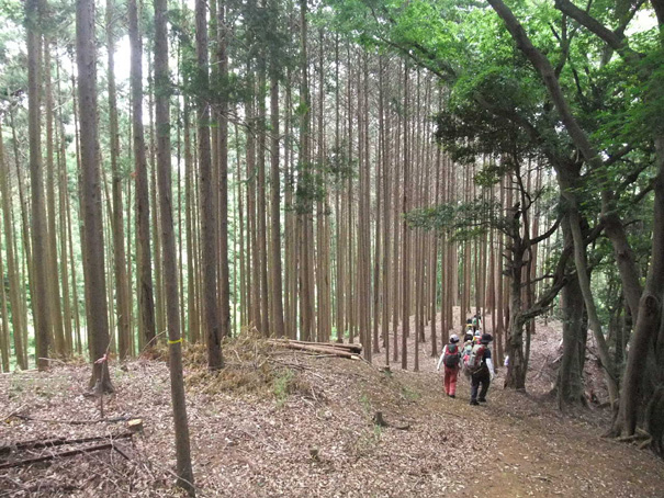 【02】七沢温泉へと下る道。みんな凄い速さで下って行きました。まっすぐな幹の並びがとても綺麗でした。