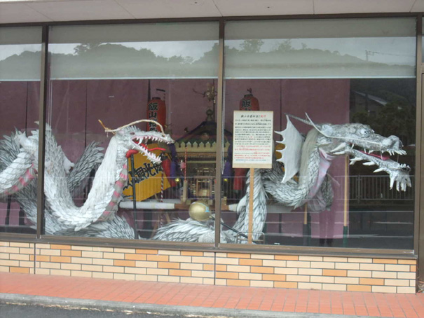 【05】飯山温泉を歩いていると、ガラス張りの中でうねっていました。結構な迫力でした。お祭りに練り歩くのですね。