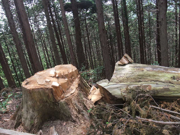 白っぽく乾いた色で、幹がまっすぐな杉林の中に、 (檜ではないですよね)