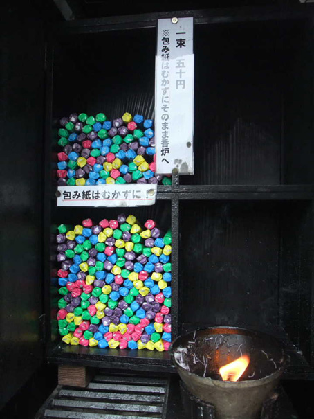 色とりどりの香の包みが目新しいものでしたが、ここでは最後に香炉の炎にたどり着きます。写真の中で視線が動くのはどうしてでしょうか。