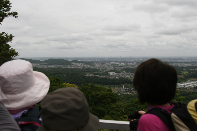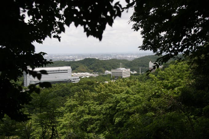 【19】標高284mの白山にはほとんど存在感がありませんでしたが、白山神社と名づけられた祠から始まるシャープな稜線は深い緑におおわれて山歩きの気分でした。何か所かで展望が開けましたが、すぐ足元まで住宅や、工場という雰囲気の大きな建物が迫っていました。