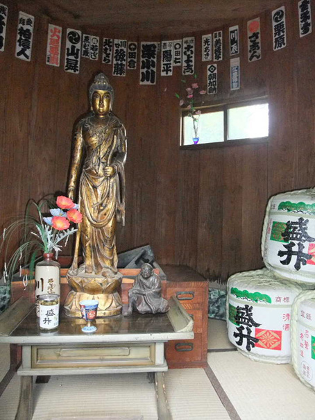 【21】七沢温泉の玉川館のそばで。古い大きな酒樽の上に苔が生えた屋根を持つお堂の中にいらした。地域の人達の祈りが感じられます。