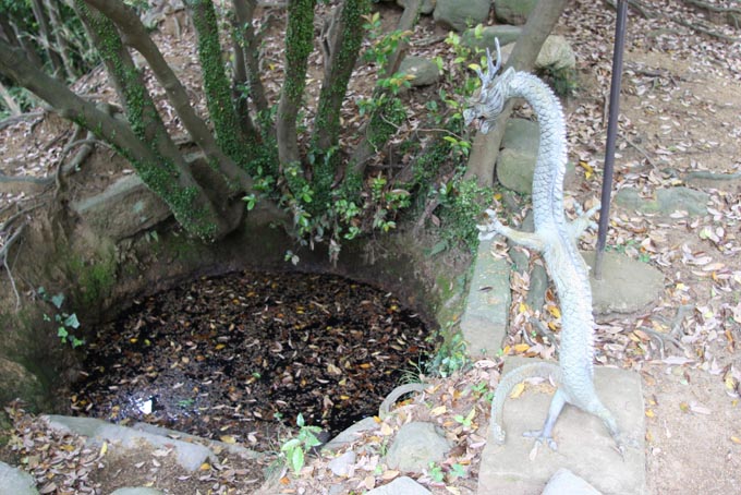 【25】これがこの地域を象徴する白山神社前の白龍……だと思います。この小さな池に水があるということ自体、なんだかこの白龍のおかげというふうに見えました。口から水が出る仕掛けがあるのではないかと何度も足元を確かめてしまいました。