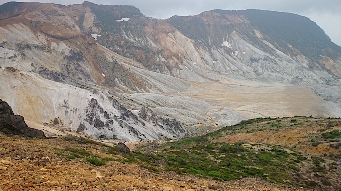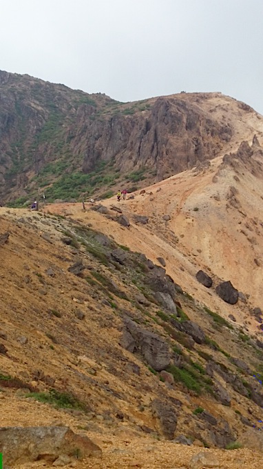 6.17-18の安達太良山は直前に計画を大変更しました。塩沢温泉から渓谷ルートをたどってくろがね小屋泊まり、翌日安達太良山から箕輪山を経て野地温泉に下るというところ、野地温泉泊まりで安達太良山へとゆるゆる登るという逆行計画にしたのです。皆さんにはチケットの変更をお願いしました。