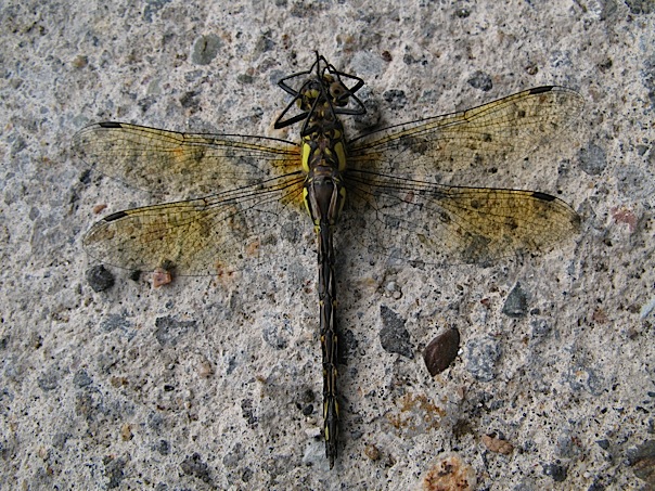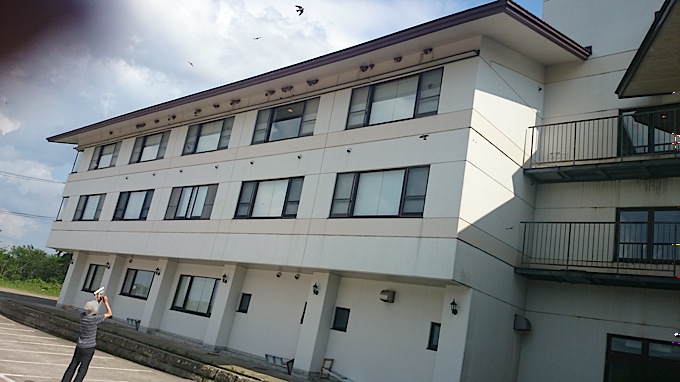 野地温泉ホテルの前にはものすごい数のツバメが群れ飛んでいた。建物全体の軒先におそらく数十という巣があって、駐車場の車にはたくさんの糞がかかっていた。そしてこのトンボ。おそらく普通のアキアカネだと思うけれど、ホテルの正面玄関の石段を下りきったところにこの姿があった。ツバメ軍団とのバトルがあったのだろうか。